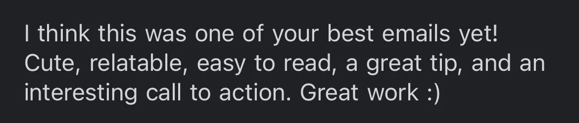 Folks love my free, weekly newsletter! But you don’t have to take my word for it: